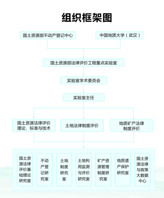 建设历史:根据2006年《国土资源部 教育部共建中国地质大学协议》精神,国土资源部不动产登记中心和中国地质大学(武汉)发挥各自优势、整合优质资源,共同创建了国土资源法律评价工程重点实验室(以下简称实验室),于2009年8月1日起在北京、武汉两地开放运行。